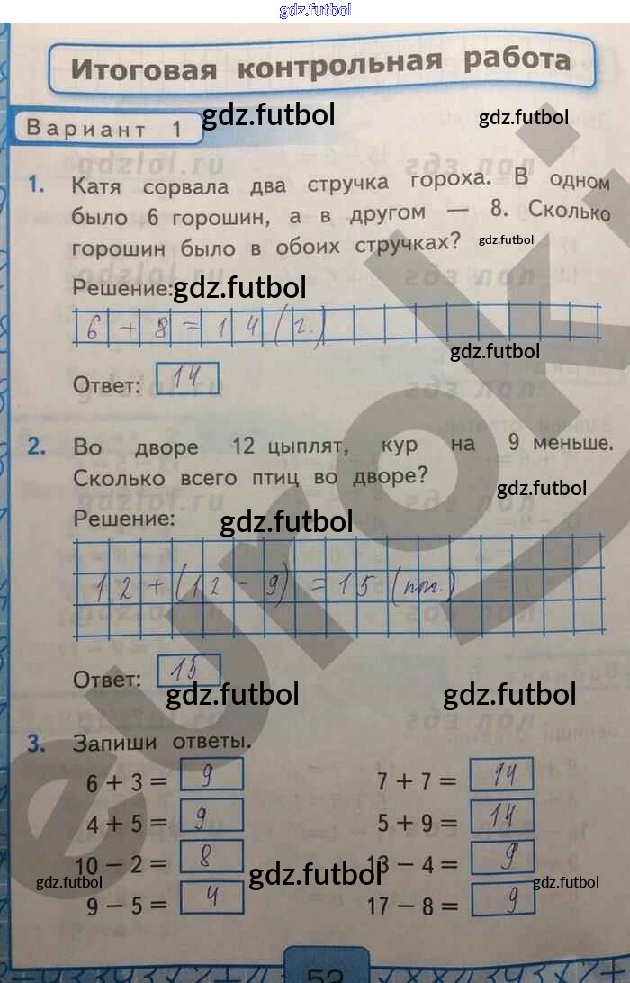 Готовые домашние задания по Математике за 1 класс Рудницкая Контрольные работы УМК 2014 ФГОС - Часть 2. Страницы 52
