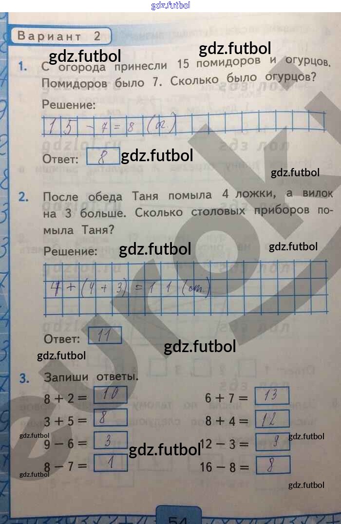 Готовые домашние задания по Математике за 1 класс Рудницкая Контрольные работы УМК 2014 ФГОС - Часть 2. Страницы 54