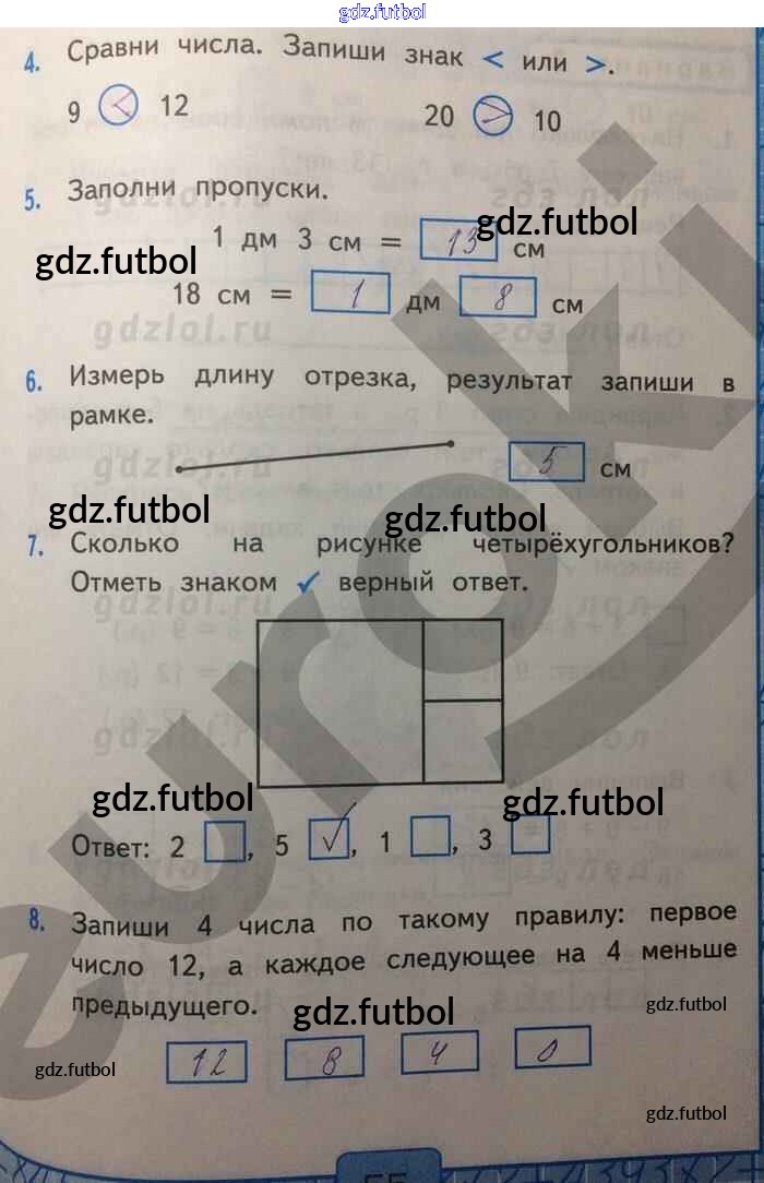 Готовые домашние задания по Математике за 1 класс Рудницкая Контрольные работы УМК 2014 ФГОС - Часть 2. Страницы 55