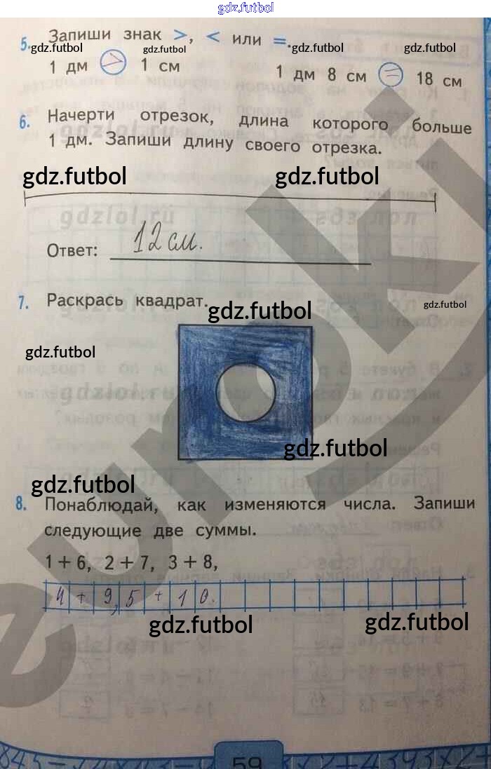Готовые домашние задания по Математике за 1 класс Рудницкая Контрольные работы УМК 2014 ФГОС - Часть 2. Страницы 59