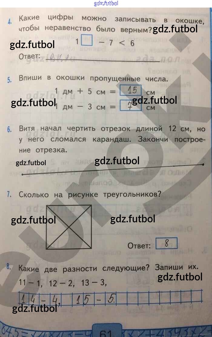 Готовые домашние задания по Математике за 1 класс Рудницкая Контрольные работы УМК 2014 ФГОС - Часть 2. Страницы 61