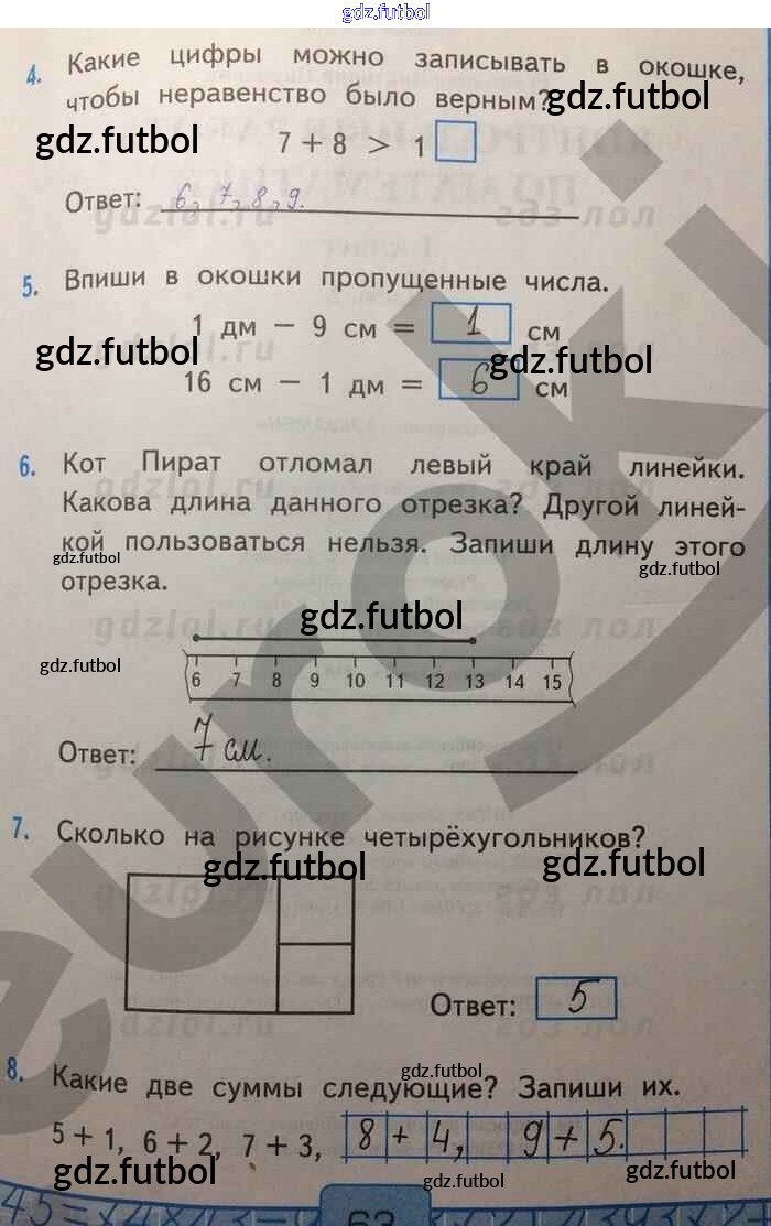 Готовые домашние задания по Математике за 1 класс Рудницкая Контрольные работы УМК 2014 ФГОС - Часть 2. Страницы 63
