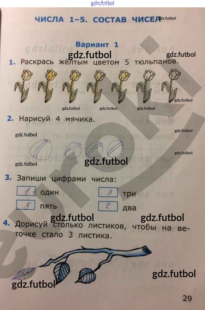 Готовые домашние задания по Математике за 1 класс Самсонова Самостоятельные работы УМК 2014 ФГОС - Часть 1. Страницы 29