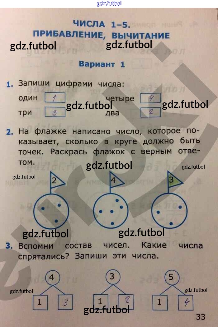 Готовые домашние задания по Математике за 1 класс Самсонова Самостоятельные работы УМК 2014 ФГОС - Часть 1. Страницы 33