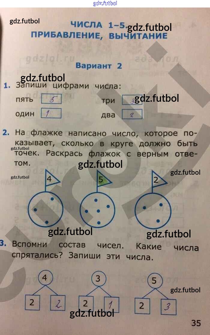 Готовые домашние задания по Математике за 1 класс Самсонова Самостоятельные работы УМК 2014 ФГОС - Часть 1. Страницы 35