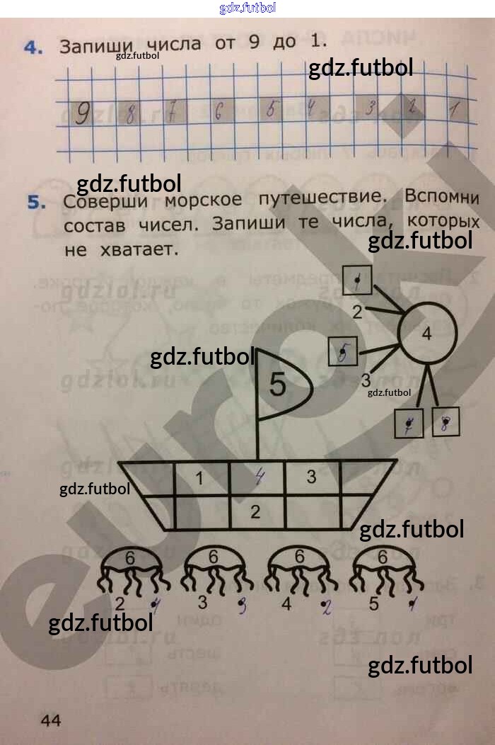 Готовые домашние задания по Математике за 1 класс Самсонова Самостоятельные работы УМК 2014 ФГОС - Часть 1. Страницы 44
