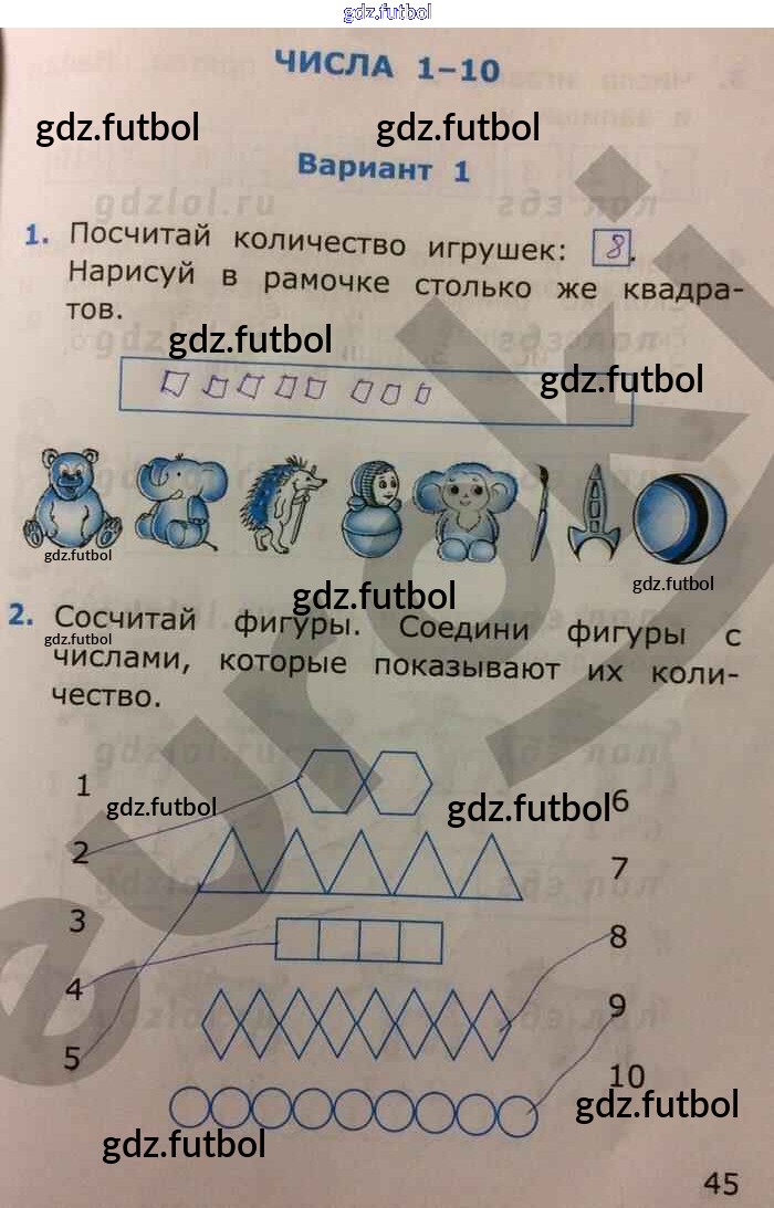 Готовые домашние задания по Математике за 1 класс Самсонова Самостоятельные работы УМК 2014 ФГОС - Часть 1. Страницы 45