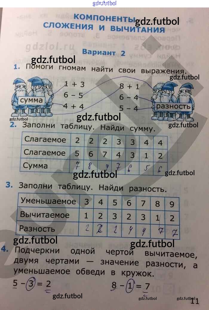 Готовые домашние задания по Математике за 1 класс Самсонова Самостоятельные работы УМК 2014 ФГОС - Часть 2. Страницы 11
