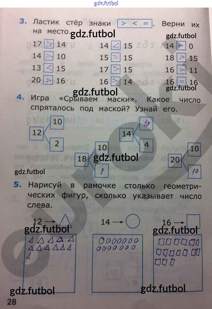 Готовые домашние задания по Математике за 1 класс Самсонова Самостоятельные работы УМК 2014 ФГОС - Часть 2. Страницы 28