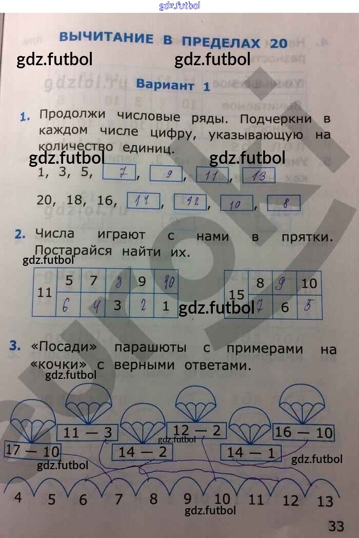 Готовые домашние задания по Математике за 1 класс Самсонова Самостоятельные работы УМК 2014 ФГОС - Часть 2. Страницы 33