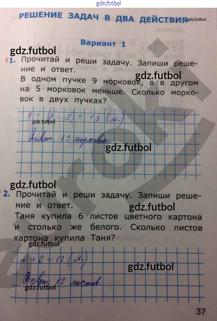 Готовые домашние задания по Математике за 1 класс Самсонова Самостоятельные работы УМК 2014 ФГОС - Часть 2. Страницы 37
