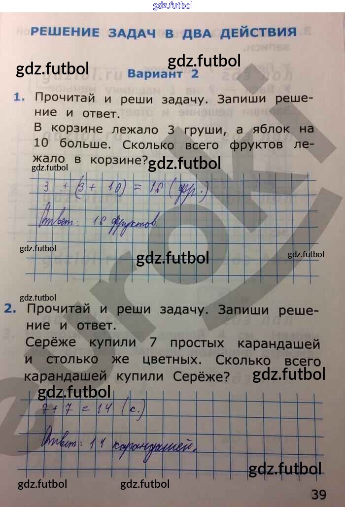 Готовые домашние задания по Математике за 1 класс Самсонова Самостоятельные работы УМК 2014 ФГОС - Часть 2. Страницы 39
