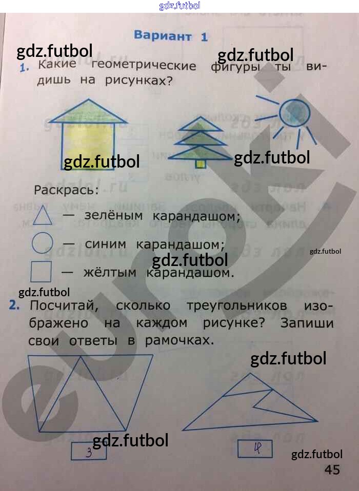 Готовые домашние задания по Математике за 1 класс Самсонова Самостоятельные работы УМК 2014 ФГОС - Часть 2. Страницы 45