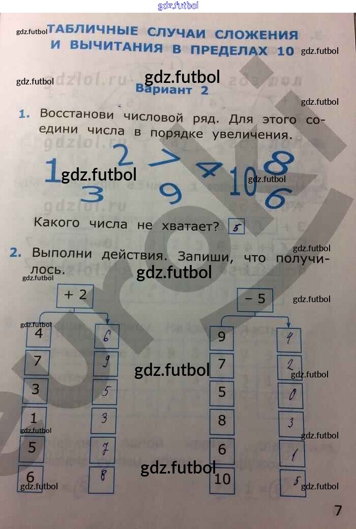 Готовые домашние задания по Математике за 1 класс Самсонова Самостоятельные работы УМК 2014 ФГОС - Часть 2. Страницы 7