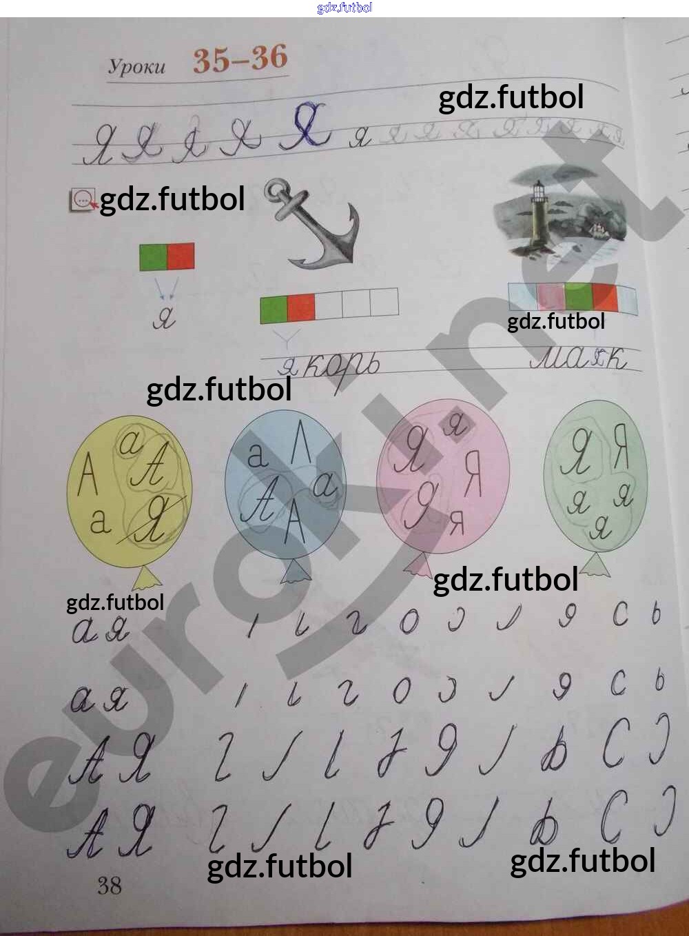 Готовые домашние задания по Русскому языку за 1 класс Безруких Рабочая тетрадь УМК 2019 ФГОС - Часть 1. Страницы 38