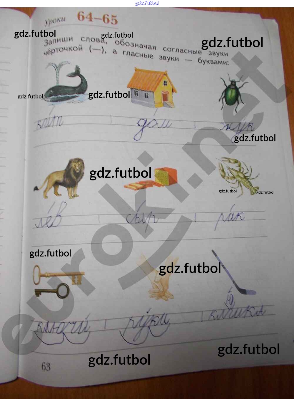 Готовые домашние задания по Русскому языку за 1 класс Безруких Рабочая тетрадь УМК 2019 ФГОС - Часть 1. Страницы 63