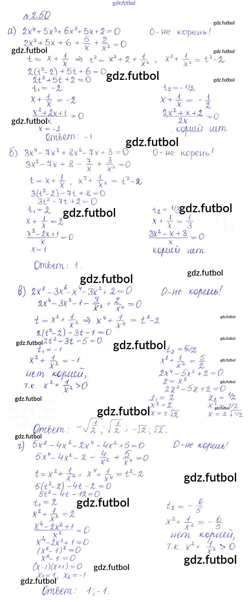 Готовые домашние задания по Алгебре за 10 класс Никольский Учебник МГУ - школе Базовый и углубленный уровень 2015 ФГОС - §2. Рациональные уравнения и неравенства 50