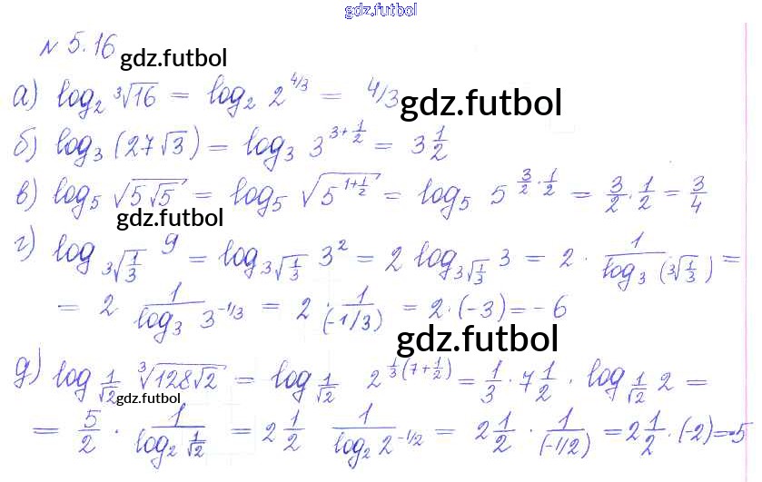 Готовые домашние задания по Алгебре за 10 класс Никольский Учебник МГУ - школе Базовый и углубленный уровень 2015 ФГОС - §5. Логарифмы 16