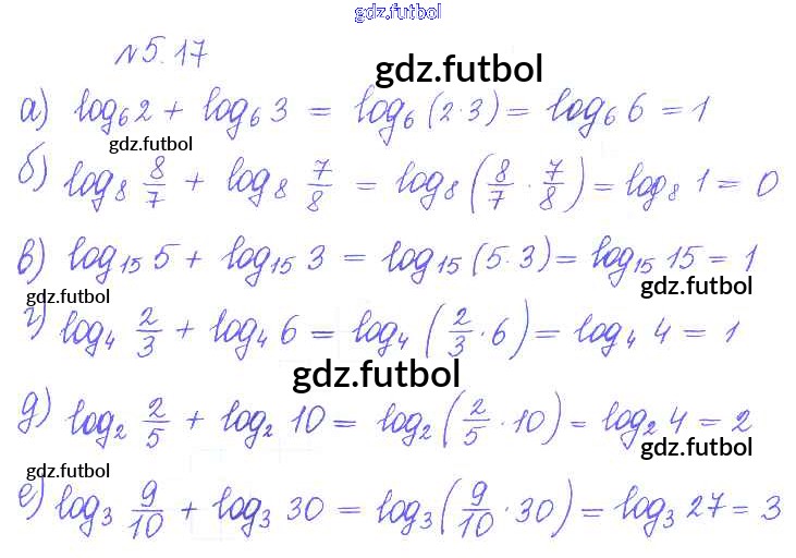 Готовые домашние задания по Алгебре за 10 класс Никольский Учебник МГУ - школе Базовый и углубленный уровень 2015 ФГОС - §5. Логарифмы 17