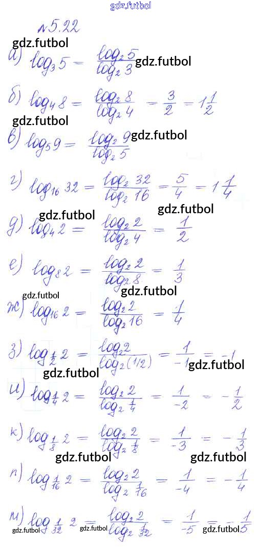 Готовые домашние задания по Алгебре за 10 класс Никольский Учебник МГУ - школе Базовый и углубленный уровень 2015 ФГОС - §5. Логарифмы 22