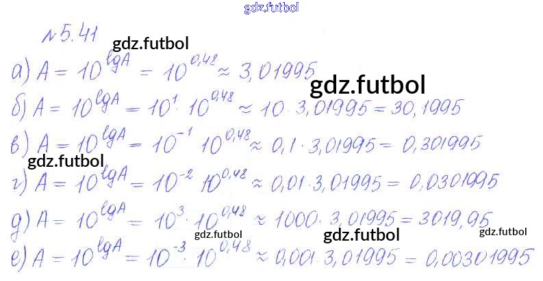 Готовые домашние задания по Алгебре за 10 класс Никольский Учебник МГУ - школе Базовый и углубленный уровень 2015 ФГОС - §5. Логарифмы 41