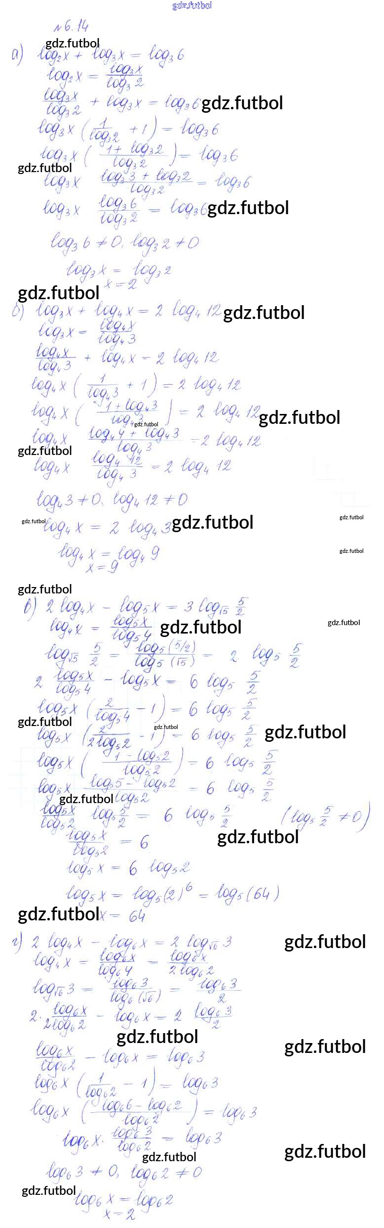 Готовые домашние задания по Алгебре за 10 класс Никольский Учебник МГУ - школе Базовый и углубленный уровень 2015 ФГОС - §6. Показательные и логарифмические уравнения и неравенства 14