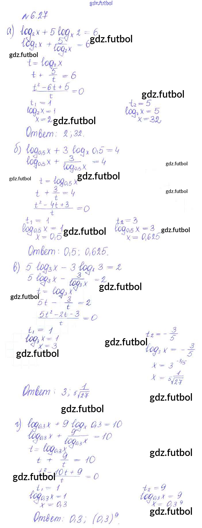 Готовые домашние задания по Алгебре за 10 класс Никольский Учебник МГУ - школе Базовый и углубленный уровень 2015 ФГОС - §6. Показательные и логарифмические уравнения и неравенства 27