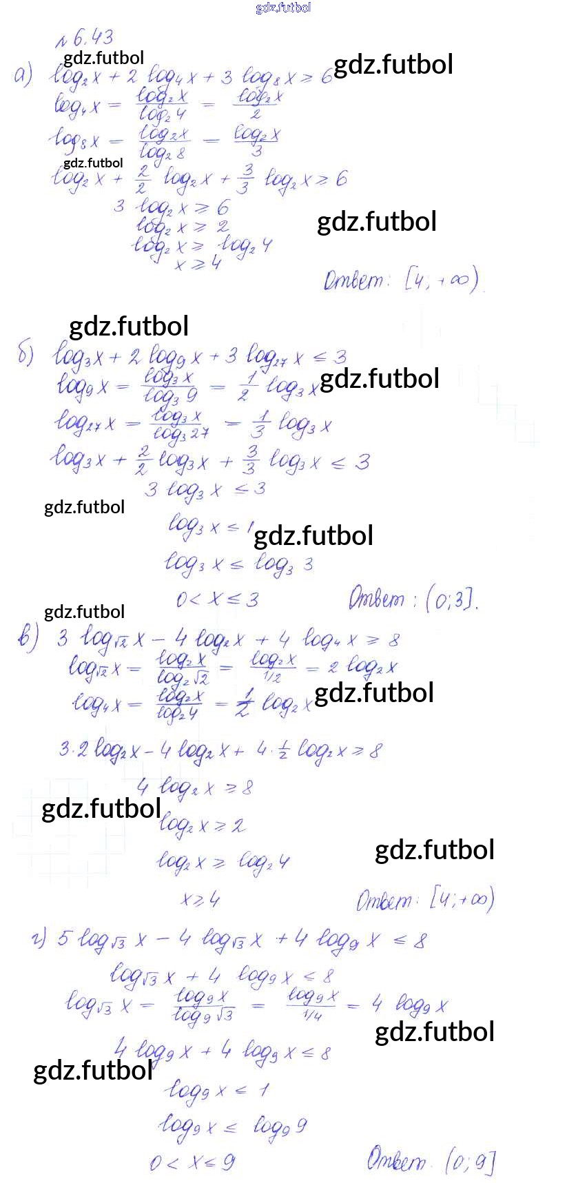 Готовые домашние задания по Алгебре за 10 класс Никольский Учебник МГУ - школе Базовый и углубленный уровень 2015 ФГОС - §6. Показательные и логарифмические уравнения и неравенства 43