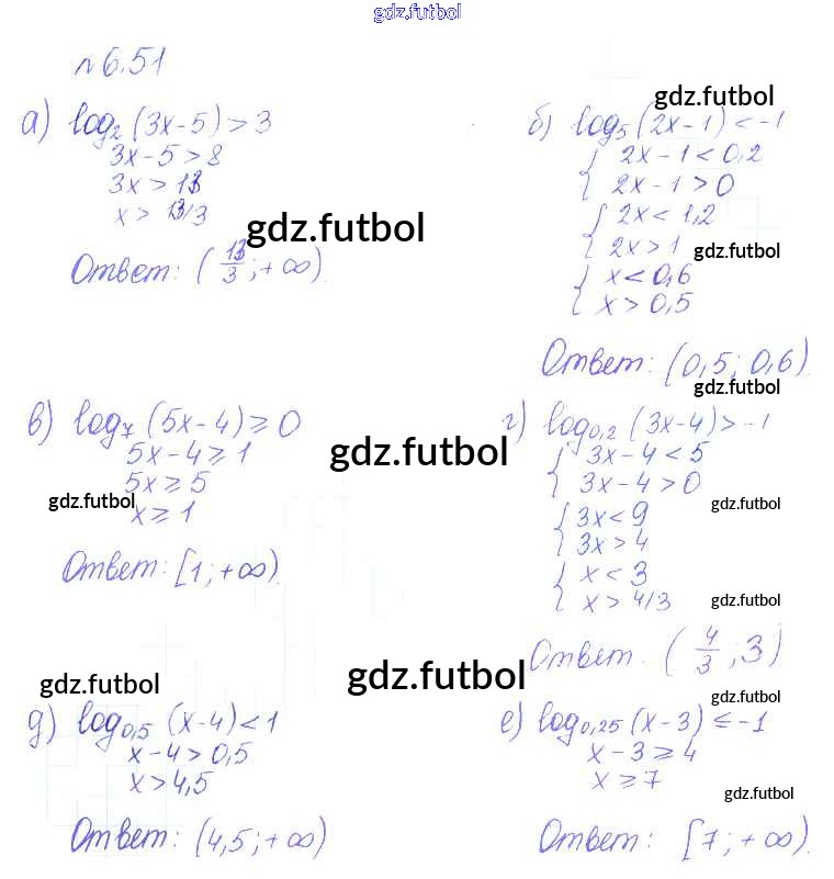 Готовые домашние задания по Алгебре за 10 класс Никольский Учебник МГУ - школе Базовый и углубленный уровень 2015 ФГОС - §6. Показательные и логарифмические уравнения и неравенства 51