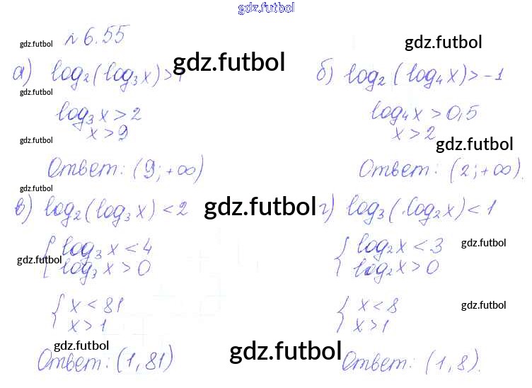 Готовые домашние задания по Алгебре за 10 класс Никольский Учебник МГУ - школе Базовый и углубленный уровень 2015 ФГОС - §6. Показательные и логарифмические уравнения и неравенства 55