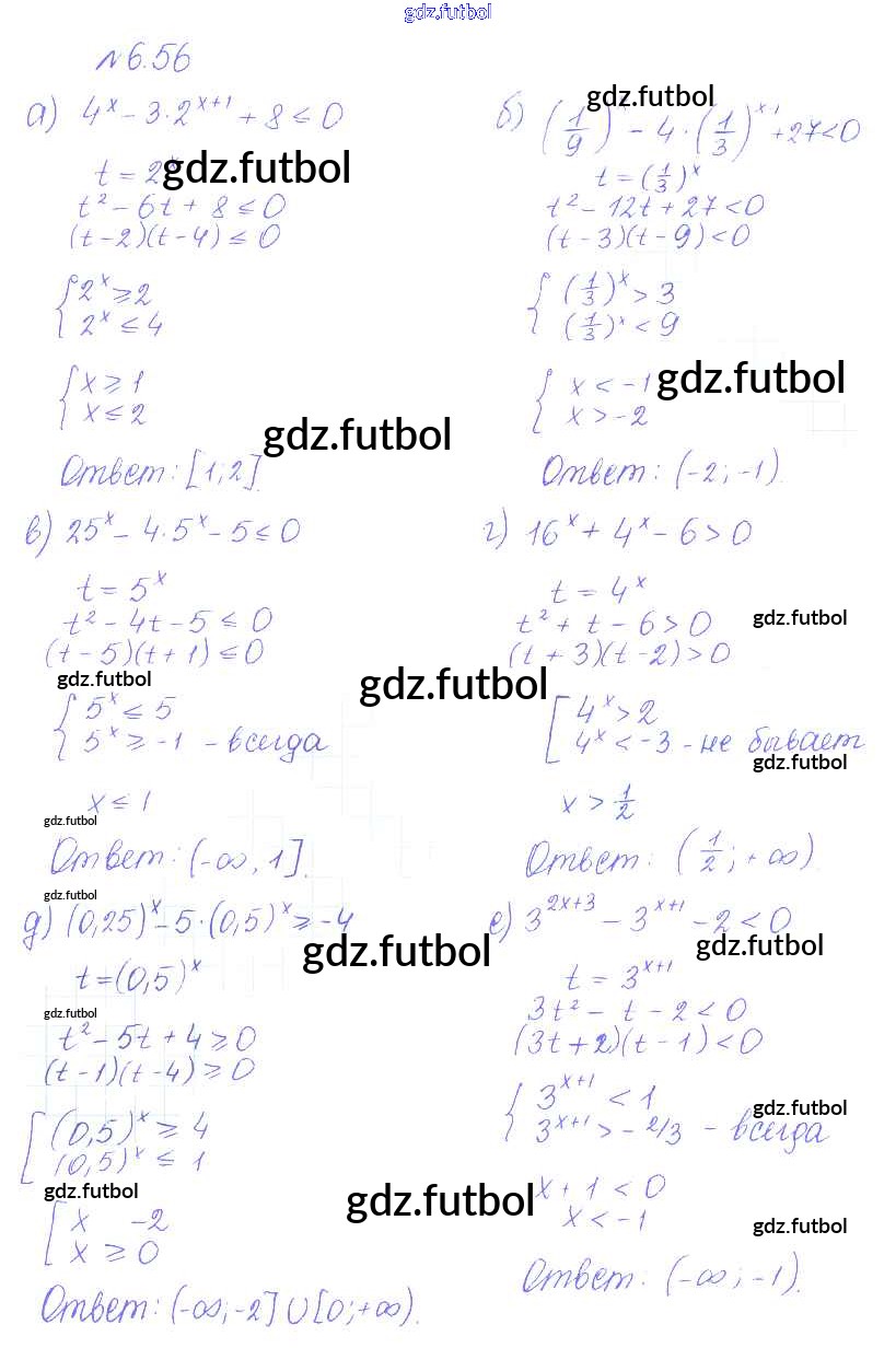 Готовые домашние задания по Алгебре за 10 класс Никольский Учебник МГУ - школе Базовый и углубленный уровень 2015 ФГОС - §6. Показательные и логарифмические уравнения и неравенства 56
