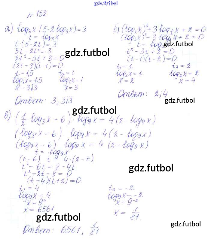 Готовые домашние задания по Алгебре за 10 класс Никольский Учебник МГУ - школе Базовый и углубленный уровень 2015 ФГОС - Задания для повторения 152