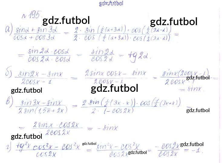 Готовые домашние задания по Алгебре за 10 класс Никольский Учебник МГУ - школе Базовый и углубленный уровень 2015 ФГОС - Задания для повторения 195