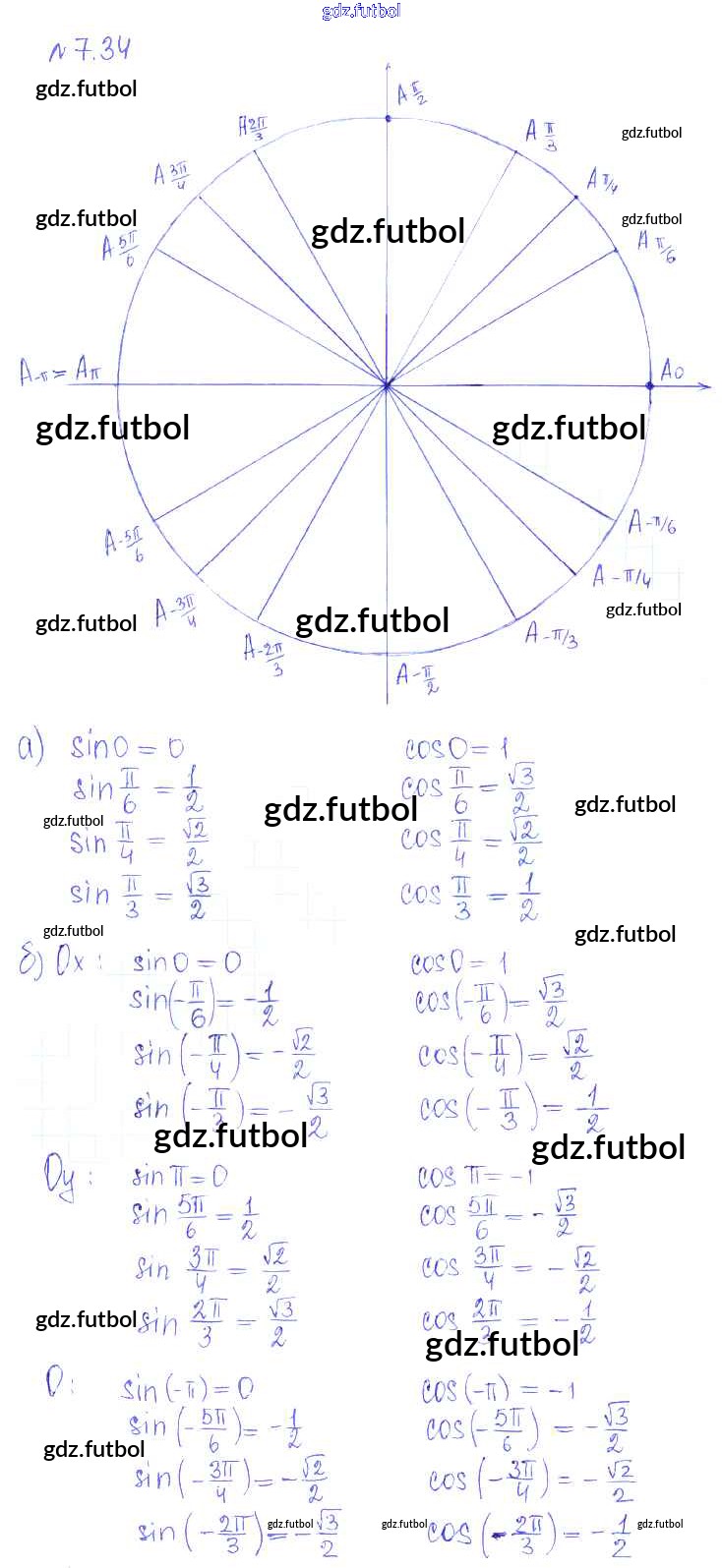 Готовые домашние задания по Алгебре за 10 класс Никольский Учебник МГУ - школе Базовый и углубленный уровень 2015 ФГОС - §7. Синус и косинус угла 34