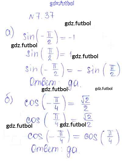 Готовые домашние задания по Алгебре за 10 класс Никольский Учебник МГУ - школе Базовый и углубленный уровень 2015 ФГОС - §7. Синус и косинус угла 37
