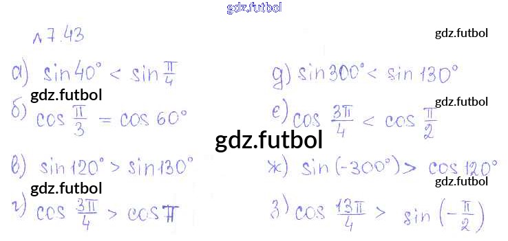 Готовые домашние задания по Алгебре за 10 класс Никольский Учебник МГУ - школе Базовый и углубленный уровень 2015 ФГОС - §7. Синус и косинус угла 43