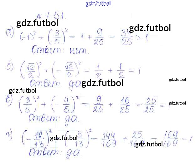 Готовые домашние задания по Алгебре за 10 класс Никольский Учебник МГУ - школе Базовый и углубленный уровень 2015 ФГОС - §7. Синус и косинус угла 51