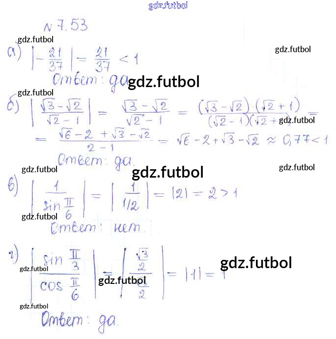 Готовые домашние задания по Алгебре за 10 класс Никольский Учебник МГУ - школе Базовый и углубленный уровень 2015 ФГОС - §7. Синус и косинус угла 53