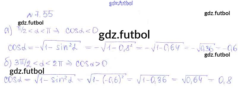 Готовые домашние задания по Алгебре за 10 класс Никольский Учебник МГУ - школе Базовый и углубленный уровень 2015 ФГОС - §7. Синус и косинус угла 55