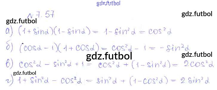 Готовые домашние задания по Алгебре за 10 класс Никольский Учебник МГУ - школе Базовый и углубленный уровень 2015 ФГОС - §7. Синус и косинус угла 57