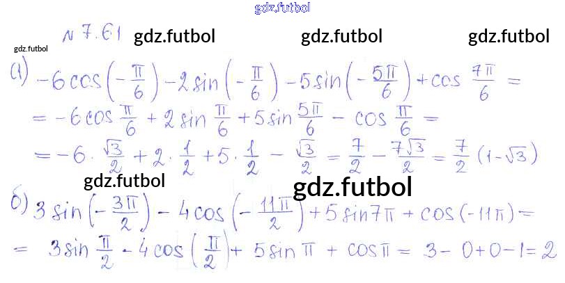 Готовые домашние задания по Алгебре за 10 класс Никольский Учебник МГУ - школе Базовый и углубленный уровень 2015 ФГОС - §7. Синус и косинус угла 61