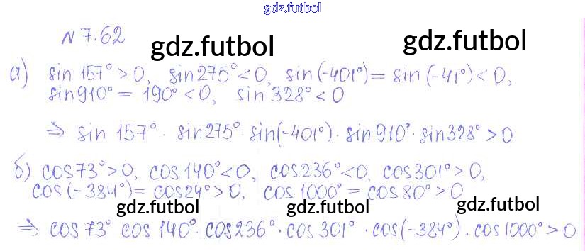 Готовые домашние задания по Алгебре за 10 класс Никольский Учебник МГУ - школе Базовый и углубленный уровень 2015 ФГОС - §7. Синус и косинус угла 62