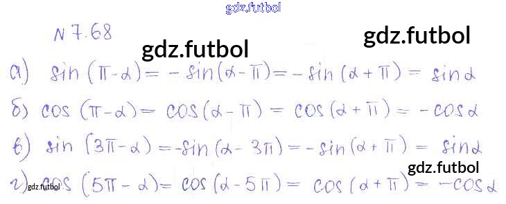 Готовые домашние задания по Алгебре за 10 класс Никольский Учебник МГУ - школе Базовый и углубленный уровень 2015 ФГОС - §7. Синус и косинус угла 68