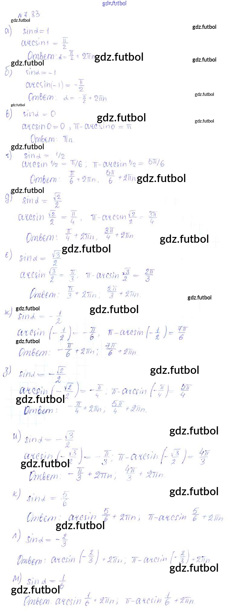 Готовые домашние задания по Алгебре за 10 класс Никольский Учебник МГУ - школе Базовый и углубленный уровень 2015 ФГОС - §7. Синус и косинус угла 83