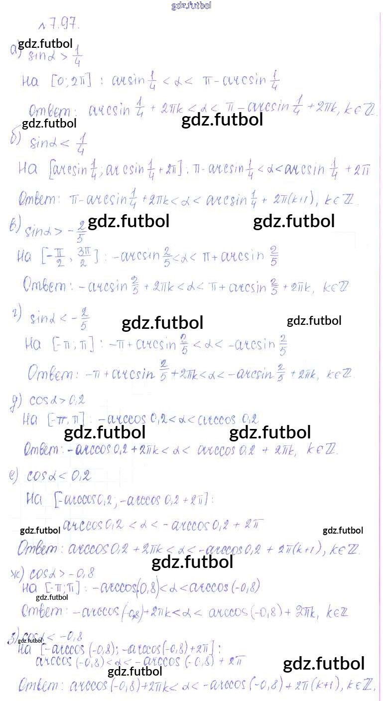 Готовые домашние задания по Алгебре за 10 класс Никольский Учебник МГУ - школе Базовый и углубленный уровень 2015 ФГОС - §7. Синус и косинус угла 97