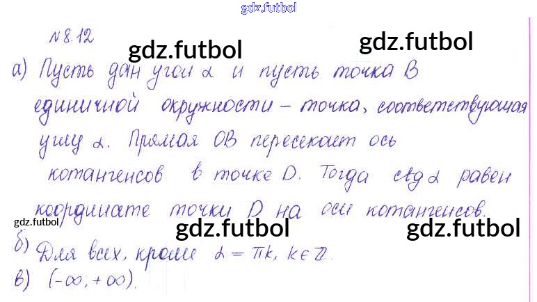 Готовые домашние задания по Алгебре за 10 класс Никольский Учебник МГУ - школе Базовый и углубленный уровень 2015 ФГОС - §8. Тангес и катангес угла 12