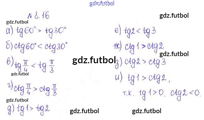 Готовые домашние задания по Алгебре за 10 класс Никольский Учебник МГУ - школе Базовый и углубленный уровень 2015 ФГОС - §8. Тангес и катангес угла 16