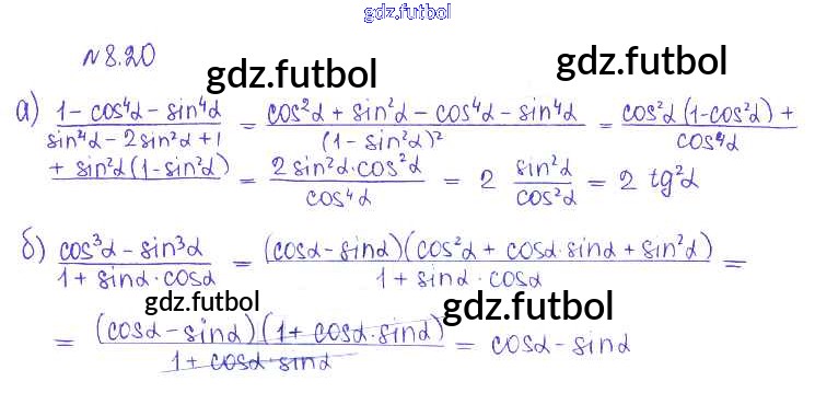 Готовые домашние задания по Алгебре за 10 класс Никольский Учебник МГУ - школе Базовый и углубленный уровень 2015 ФГОС - §8. Тангес и катангес угла 20
