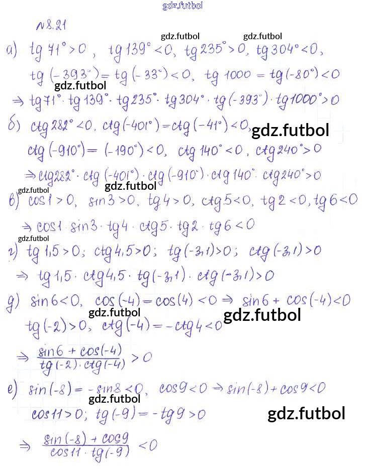 Готовые домашние задания по Алгебре за 10 класс Никольский Учебник МГУ - школе Базовый и углубленный уровень 2015 ФГОС - §8. Тангес и катангес угла 21