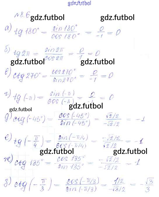 Готовые домашние задания по Алгебре за 10 класс Никольский Учебник МГУ - школе Базовый и углубленный уровень 2015 ФГОС - §8. Тангес и катангес угла 6